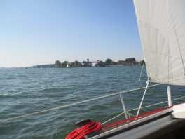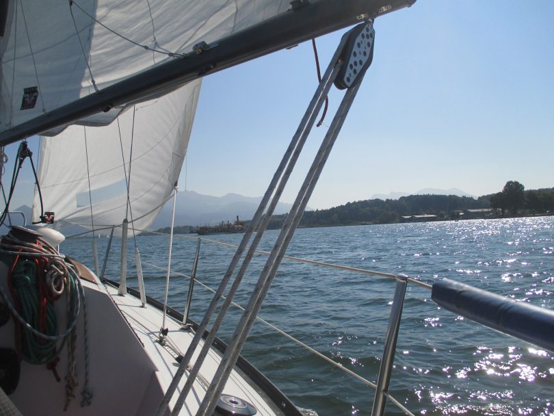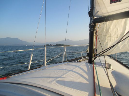 Der Chiemsee ist ein Dorado für Segler. Das sieht jeder, der am Wochenende bei schönem Wetter auf der Autobahn den Bernauer Berg herunterfährt und das bayerische Meer, auf dem es vor weißen Segeln wimmelt, vor sich liegen sieht. Selbst hatte ich noch nie Gelegenheit auf einem Segelboot mitzufahren und war daher sehr erfreut, als ein Freund, stolzer Besitzer der “Brigenna”, mir anbot, mich einmal zu einem Segelturn mitzunehmen.