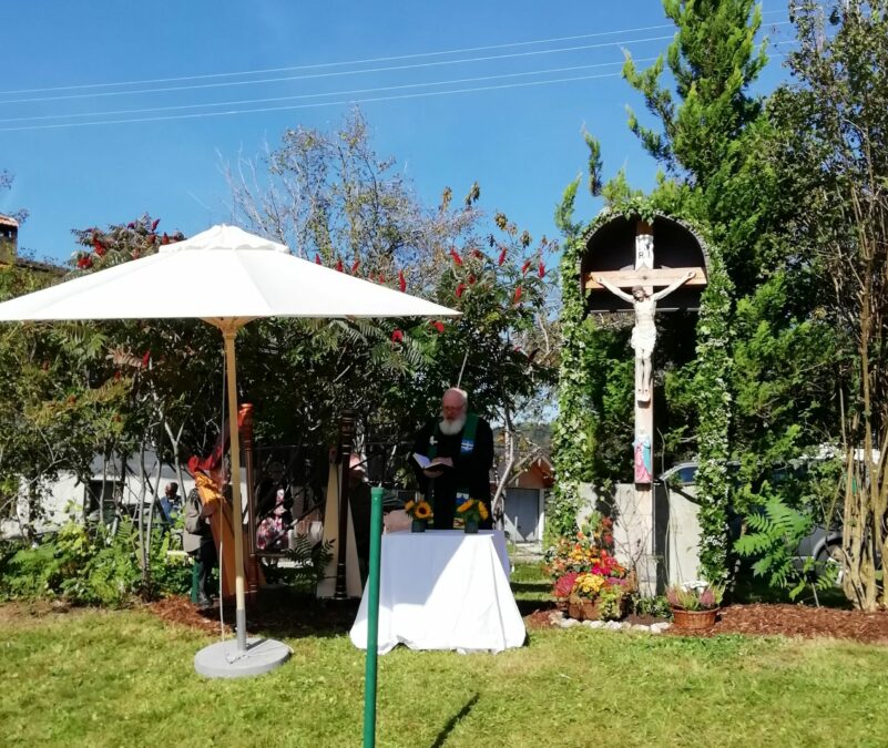 Grundstückseigner Dr. Thomas Wrede lud seine Bekannten und die Nachbarn ein zur großen Kreuzweihe und alle folgten dem Ruf.