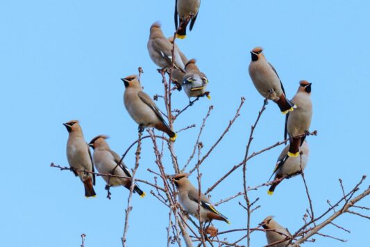 Von vielen Fotografen bewundert wurden etwa 30 Seidenschwänze, die nach mehr als einem Jahrzehnt wieder am Chiemsee Zuflucht vor den eisigen Temperaturen in ihrer Heimat gefunden haben. Nach ihrem langen Weg von Nordskandinavien in den Chiemgau boten ihnen die überreichlich vorhandenen Früchte der Misteln auf den Silberweiden am Seeufer ausreichend Nahrung. Immer wieder wurde die Beerenernte unterbrochen, um in einer kleinen Pfütze in einer Feuchtwiese zu trinken. In der Feldwieser Bucht waren noch Krickenten und ein Kormoran, in dessen Flügel sich eine Angelschnur verheddert hatte, zu beobachten.