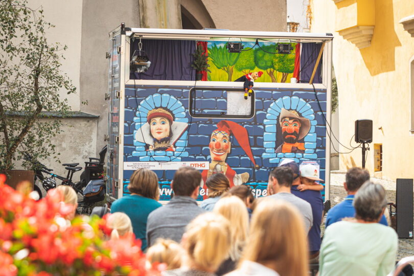 Wenn das Wetter passt, spielt der Kasperl Open-Air (bei leichtem Regen und gegen starke Sonneneinstrahlung gibt’s ein Zelt über dem Kopf), nur bei schlechtem Wetter wird in den Saal umgezogen.