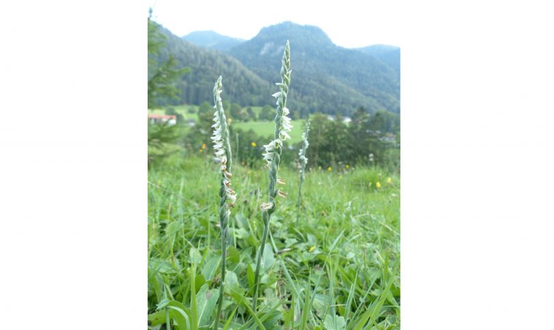 Auch eine Sennerin, die schon mehrere Sommer auf der Alm verbracht hat, lernt niemals aus: Martina Bauer aus Sachrang, die sich als Landwirtin und Sennerin gut mit Pflanzen auskennt, staunte auf einer Weidefläche bei Sachrang nicht schlecht, als ihr ein unscheinbares Pflänzchen ins Auge fiel, das sie nicht sicher kannte und das für das Priental bisher nicht nachgewiesen werden konnte. Sie sandte dem Biologen und Betreuer des Bergbauernmodells Sachrang und Aschau, Markus Höper, ein Foto der unscheinbaren Pflanze und bekam die Bestätigung, dass es sich bei der gefundenen Pflanze um die seltene Orchideenart „Herbstdrehwurz“ oder auch „Herbst-Wendelähre“ (wissenschaftlicher Name Spiranthes spiralis) handelt. Die Art gilt bayernweit als stark gefährdet und steht in Bayern unter der Gefährdungskategorie zwei auf der Roten Liste Bisher waren für die Orchidee nur einige kleine Bestände im Inntal und im Achental bekannt. Um diesen Fund an das Bayerische Landesamt für Umweltschutz in Augsburg weiterzugeben, machte sich Martina Bauer ans Zählen und ermittelte an dem Fundort über 200 Exemplare, die sich auf eine Fläche von etwa 1000 Quadratmeter verteilten. Die winzige Orchideenart, bei der die Blüten wie bei einer Wendel verdreht übereinander stehen, gedeiht nur auf extensiven Weideflächen, die im Herbst kurzrasig abgeweidet sind oder wo eine herbstliche Pflegemahd stattfindet. Ist die Fläche nur ein bisschen verfilzt oder wird von höher wachsenden Pflanzen eingenommen, verschwindet die Art, die nur eine Höhe von etwa 10 Zentimetern erreicht, schnell wieder.