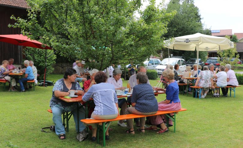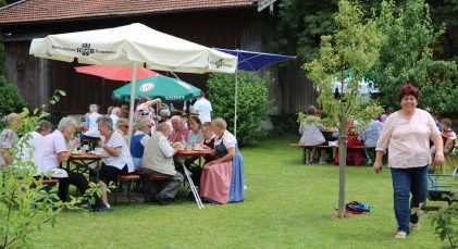Zu Kaffee und Kuchen, Brotzeit und Bier lud der Frasdorfer Frauenbund die Frasdorfer Senioren zum Sommerfest in den Pfarrgarten ein – und alle kamen. Die Vorsitzende Antonie Aicher freute sich über die rege Teilnahme der Frasdorfer. „Seit wir die Veranstaltung eingeführt haben, haben sich die Teilnehmerzahlen verdoppelt, wir freuen uns, dass wir hier eine echte Marktlücke gefunden haben“.