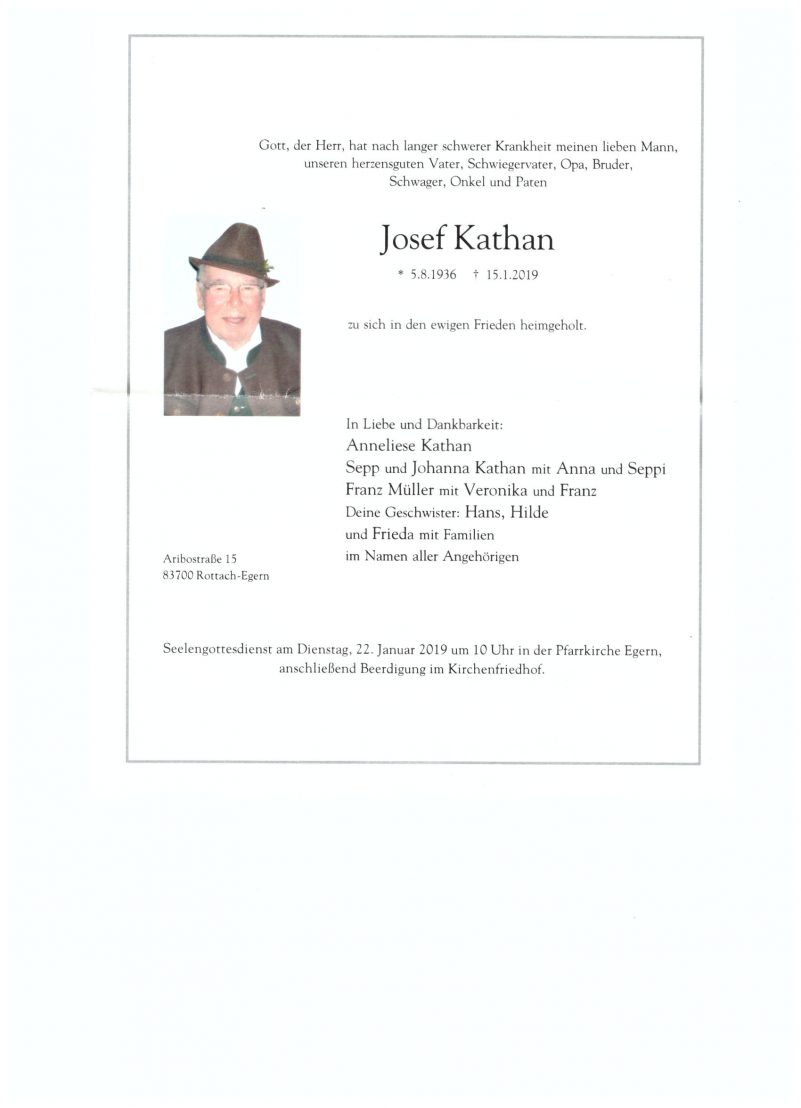 Sepp Kathan, der viele Jahre mit Melchior Wieser als Tegernseer Zwoagesang weit über seine Heimat hinaus mit klarem Männergesang erfreute, ist im Alter von 82 Jahren verstorben. Der Seelengottesdienst ist am Dienstag, 22. Januar um 10 Uhr in der Pfarrkirche von Egern.