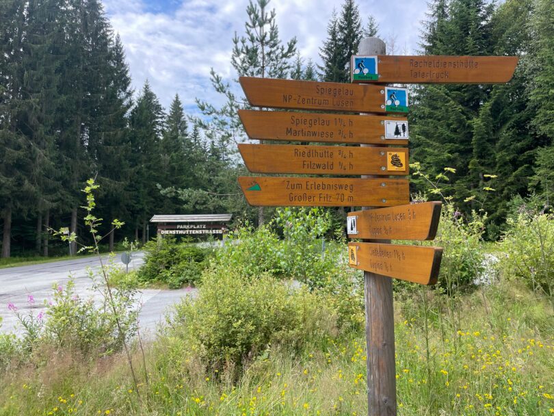 Die Igelbushaltestelle an der Diensthüttenstraße wird weiterhin bedient, in Fahrtrichtung Spiegelau wurde eine um nur wenige Meter versetzte Behelfshaltestelle eingerichtet. Keine Einschränkungen gibt es bei der Nutzung des Parkplatzes Diensthüttenstraße, ebenso bleiben die Regelungen für die Zufahrt zur Racheldiensthütte unberührt. Auch die Toilettenanlage bleibt während der gesamten Bauzeit nutzbar.