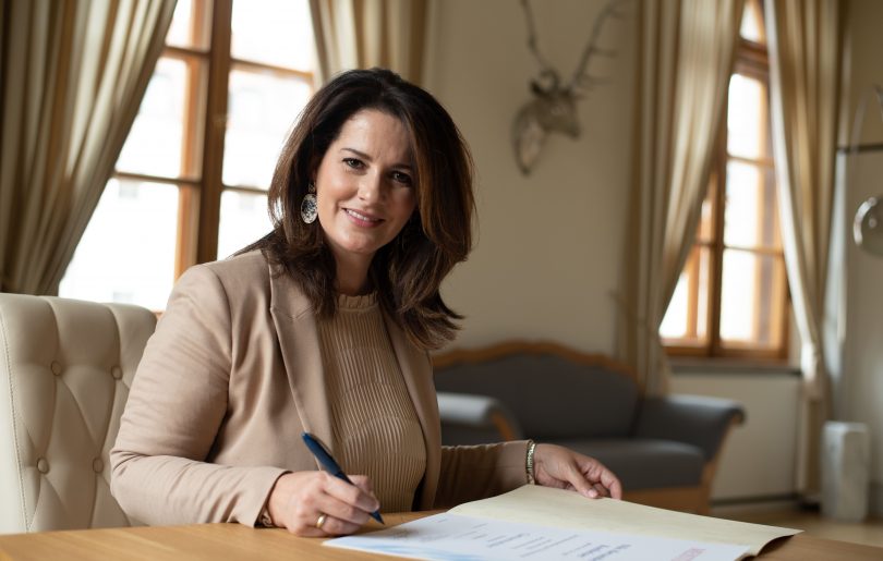 Foto StMELF – Ministerin Michaela beim Unterzeichnen der Urkunden