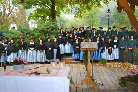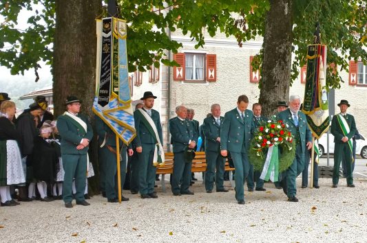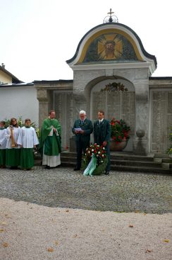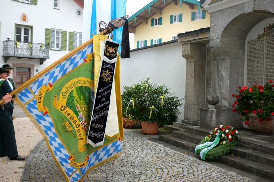 Sepp Geisreiter erinnert dabei im Angesicht der vielen Namen auf den Gedenktafeln an unselige Zeiten in der mehr als 125jährigen Geschichte der beiden Vereine und dankte allen verstorbenen und gefallenen Mitgliedern für ihren Einsatz für Brauchtum und Heimat. „Es war nicht selbstverständlich, dass bereits in den ersten Jahren nach dem Weltkrieg, in armseligen Verhältnissen, das Vereinsleben wieder aufblühen konnte“, erinnerte Geisreiter und hoffte: „nehmen wir diese Zeit als Ansporn, auch in der jetzigen Situation mit der Pandemie und ihren Einschränkungen, den Vereinen treu zu bleiben, das Erbe der Väter weiterzuleben und an einer lebenswerten und friedlichen Heimat weiterzubauen“.