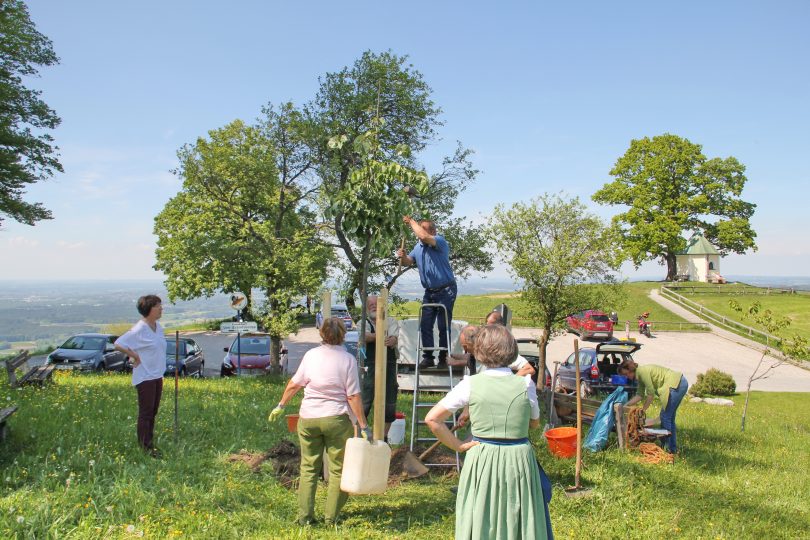 Der Bayerische Landesverband für Gartenbau und Landespflege feiert sein 125-jähriges Bestehen – und beschenkt die Kreisverbände mit Bäumen. So konnte nun der Kreisverband Rosenheim eine Silberlinde pflanzen und wählte als Standort einen der schönsten Plätze im Landkreis Rosenheim, an der Aussichtskapelle in Obereck auf dem Samerberg. Bei der gemeinsamen Pflanzaktion waren beteiligt: Bürgermeister Georg Huber, Kreisfachberater Harald Lorenz, die Vorstandschaft des Kreisverbands Rosenheim für Gartenbau und Landespflege, Franziska Kröll, Thomas Pummerer, Christian Steinbichler, Maria Ligl und Monika Grad. Auch Simon Mayer und Anderl Perret (Obst- und Gartenbauverein Samerberg und Neubeuern) legten Hand an.