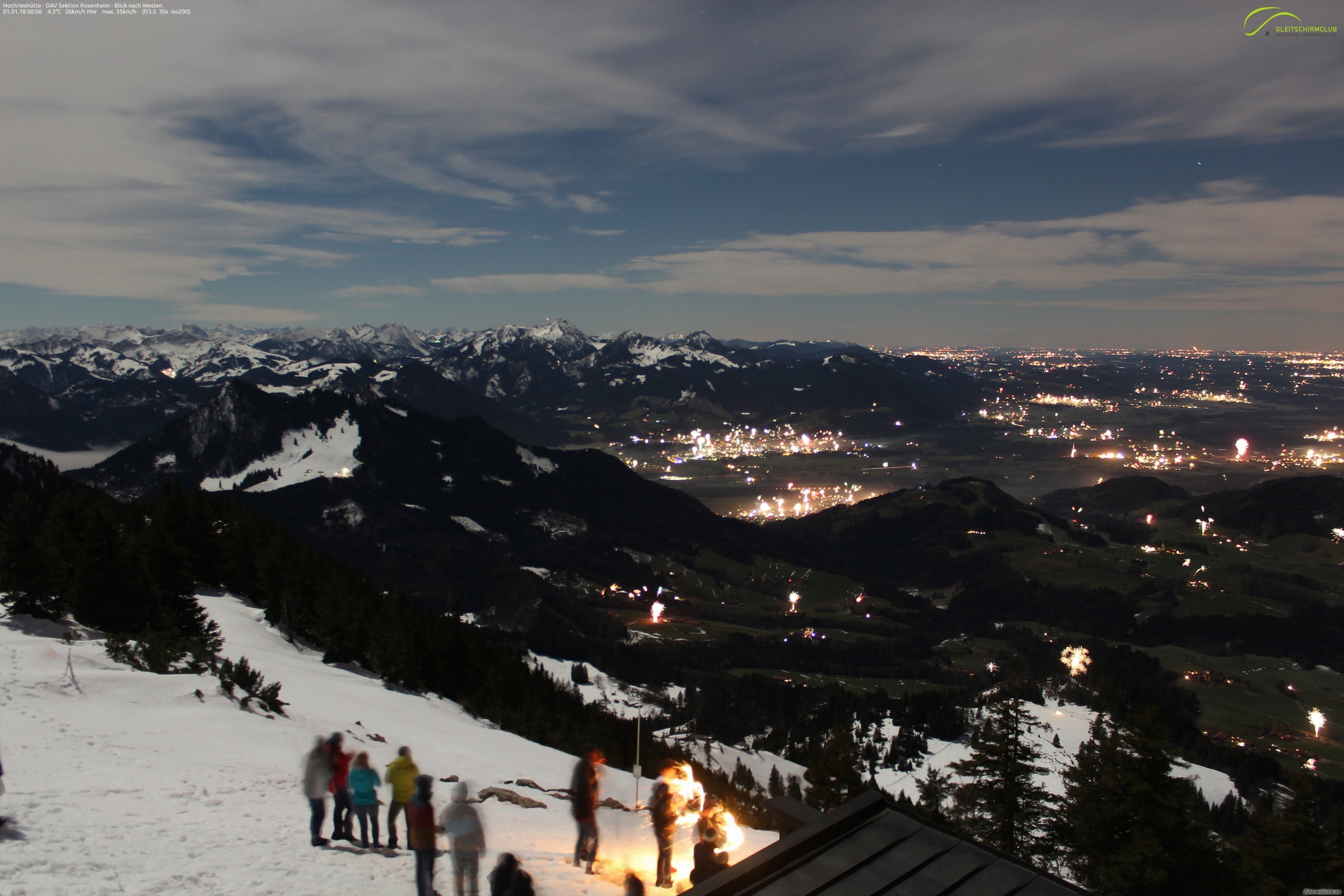 Besonders schöne Ausblicke bietet die Hochries am Samerberg und im Rosenheimer Land – wie diese Aufnahme vom Silvesterabend von der Hochries-Kamera zeigt.