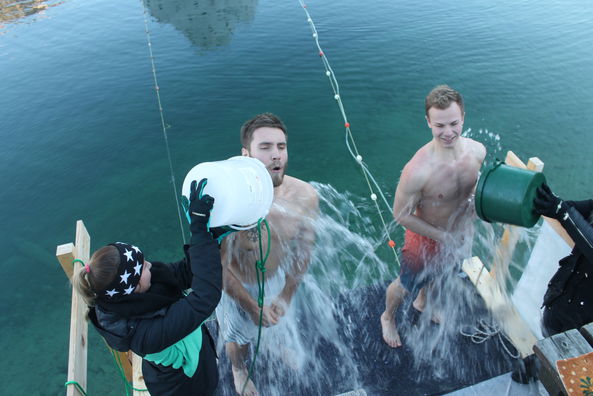 Am Steg vor dem Hotel Post in Pertisau wird man auf die kalten Wassertemperaturen des Achensees eingestimmt.