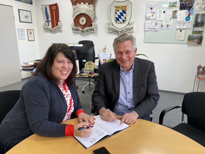 Bericht und Foto: Gemeinde Bruckmühl: Der 21. Oktober ist schon im Terminkalender eingetragen: Bürgermeister Richard Richter und Stadtmarketing-Chefin Silvia Mischi freuen sich auf die die Eröffnung des Bürger- und Kulturhaus an diesem Tag.