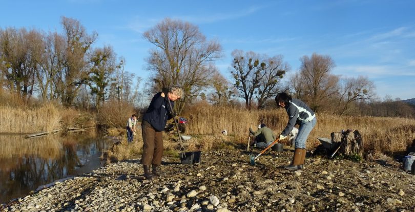 Eine Kiesinsel im Simssee soll auch im kommenden Jahr von gefährdeten Bodenbrütern genützt werden können. Mehrere Mitglieder des Landesbundes für Vogelschutz (LBV) und der Naturschutzwacht des Landkreises Rosenheim waren mit Motorsense, Pickel und Grabgabel angerückt, um die Insel von Gehölzen und hohen Gräsern zu befreien.