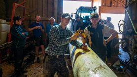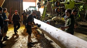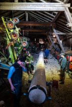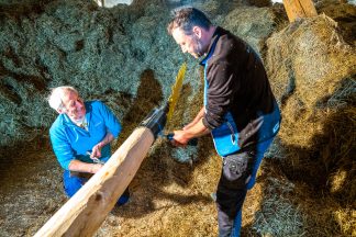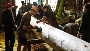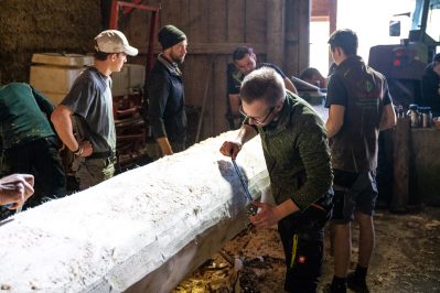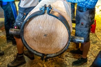Fotos: Rainer Nitzsche – Eindrücke  von den Törwanger Maibaum-Vorbereitungen in der Simssee-Region (unter anderem vom Abzählen der Ringe vom Baum, der auf ein Alter von 100 Jahren schließen lässt).