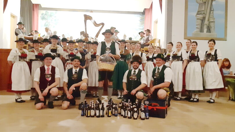 “Kathrein stellt den Tanz ein“. Zum letzten Tanz vor der staaden Adventszeit haben die beiden Gaugruppen des Lechgau Verbandes und Oberen Lechgau-Verband zum Volkstanz in die Lechhalle nach Lechbruck eingeladen. Zu den Klängen der Kerschler-Musi und den Kessl- Buam konnten die vielen Besucher fleißig ihr Tanzbein geschwingen. Die einzelnen Tänze wurden gekonnt vorgezeigt vom Martin Klopfer. Für seine jahrelange Tätigkeit als Tanzleiter beim Kathreintanz bedankten sich die beiden Gauvorplattler Simon Hitzelberger und Christoph Sieber mit ihren Gaugruppen und überreichten einenBrotzeit- und Bierkorb. Aufgelockert wurde der Abend mit sauberen Auftritten der beiden Gaugruppen. Die Bewirtung in der Lechhalle hat in bewährter Weise der Trachtenverein Edelweiß Lechbruck übernommen.