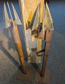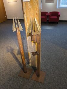 Die Idee zur Aufstellung der beiden Skulpturen “Ajetes” und “König und Königin” an prominenter Stelle hatte Kunstvermittlerin Inge Fricke M.A., die Kuratorin der Ausstellung.  Die Objekte, die 2001 während eines Stahlbildhauer Kurses von Hans Thurner und Ute Lechner entstanden sind, machen sich auch im Gegensatz zu, bzw. im Verbund mit den anderen Arbeiten sehr gut und sind eine echte Bereicherung des Foyers.