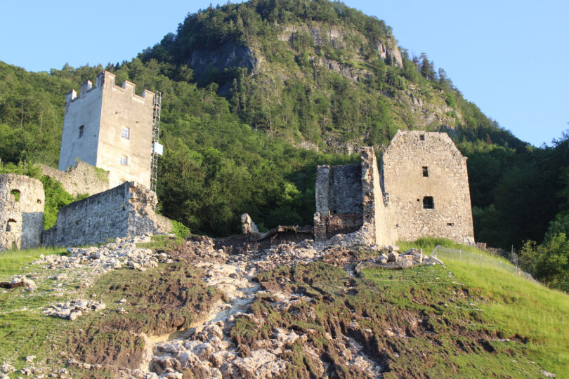 Nachdem Wassermassen einen erheblichen Teil der vorhandenen Burgmauerreste von Burg Falkenstein zerstört haben, stehen jetzt die Sicherungsmaßnahmen auf dem Burggelände im Vordergrund. Derzeit die Situation auf dem Gelände weitgehend stabil. Das hat die Überprüfung eines Geologen ergeben.