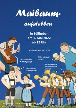 Nachdem in Söllhuben in den letzten Jahren die Stelle des Maibaum mit einer Maibaumbank geziert wurde, gibt es dieses Jahr wieder einen echten Maibaum. Dieser wurde Anfang des Jahres geschnitten. Ein besonderer Dank gilt den Stiftern Gitti und Andi Berger sowie Sepp Ruhsamer. Der 30 Meter lange Baum wurde auch schnell entwendet. Die Diebe werden am 01. Mai ab 12 Uhr in der Söllhubener Ortsmitte erwartet um den Baum mit vereinten Kräften aufzustellen. Für das leibliche Wohl ist gesorgt. Die Kindergruppe tritt auf und „a Musi“ gibt’s auch.