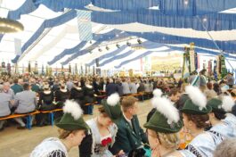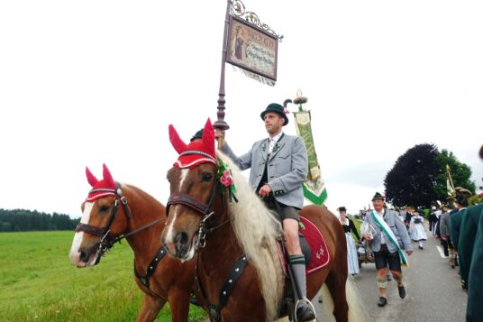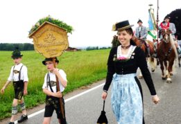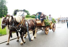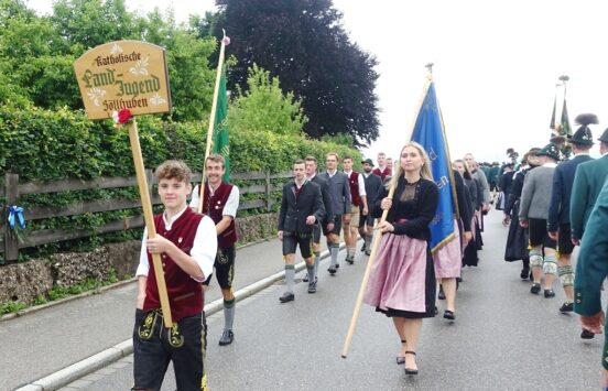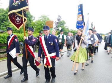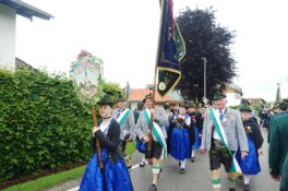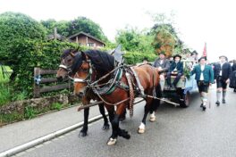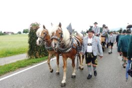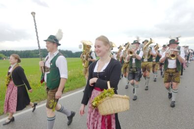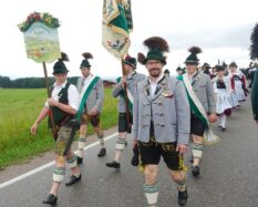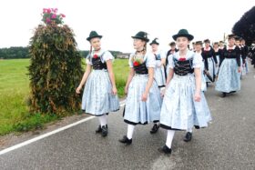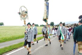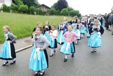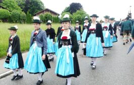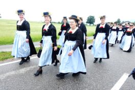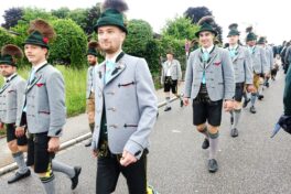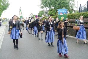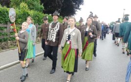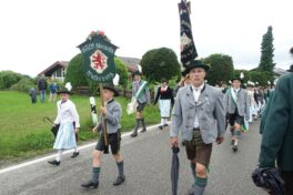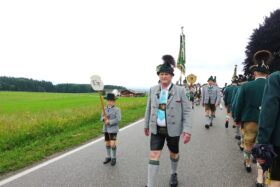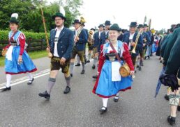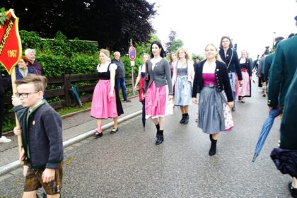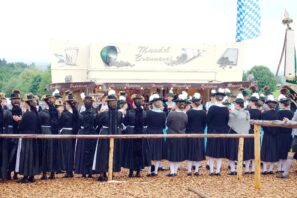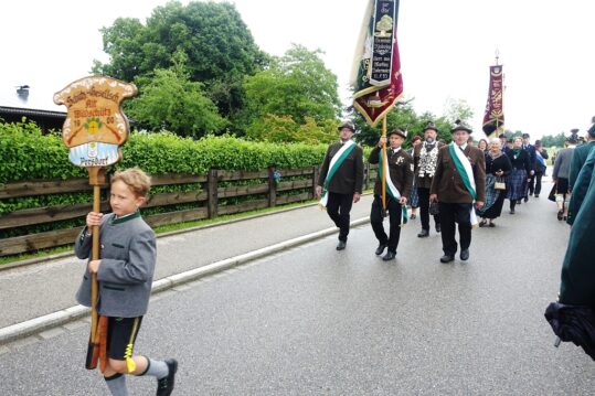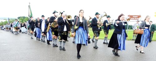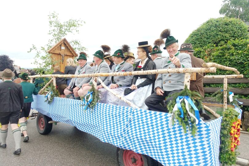 Nach einem Gottesdienst, der witterungsbedingt nicht an der Kapelle oberhalb von Sölllhuben, sondern im Festzelt festlich gefeiert wurde, konnten die Trachtler am Pfingstsonntag doch noch nach draußen gehen.