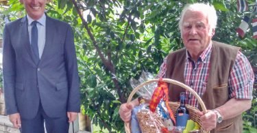 Sebastian Staffner, Teilnehmer des Ersten Weltkriegs 1914 bis 1918 im Jahr 1973 mit seinem Enkel Heinrich Rehberg
