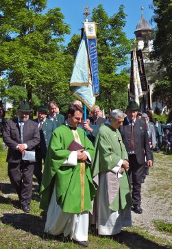Einzug VorstandschaftDSCF1697: Pater Vasile, Bruder Franz und die Gauvorstandschaft beim Einzug zum Gottesdienst