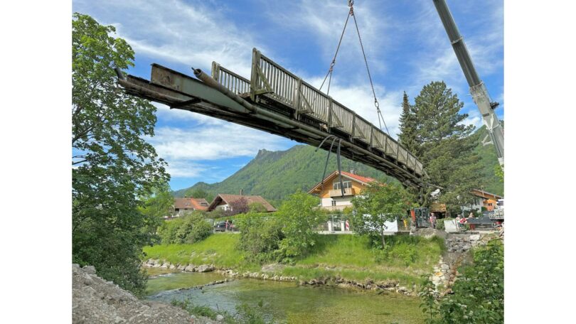 Gestern, am Donnerstag, war es soweit, und der bisherige Steg wurde durch einen Schwerlastkran in millimetergenauer Feinarbeit ausgehoben. Diese mit Schwerlast versehene Arbeit war ein besonderer und imposanter Anblick, der natürlich von Aschauer Seite durch die Fotolinse festgehalten wurde. Nun müssen die Fundamente neu gemacht werden, und es stehen noch weitere aufwändige Arbeiten an. Die neue Brücke wird auch wieder eine Spannweite von über 23 Meter haben und ohne Überdachung gebaut sein. Doch bis es soweit ist, wird das Wasserwirtschaftsamt Rosenheim noch in diesem Bereich der Prien das Wasserbett sanieren. Es wird wieder eine Stahlbrücke sein, die holzbelankt wird, was von der Aschauer Firma Schreinerei und Zimmerei Schleipfner und Wörndl durchgeführt wird.