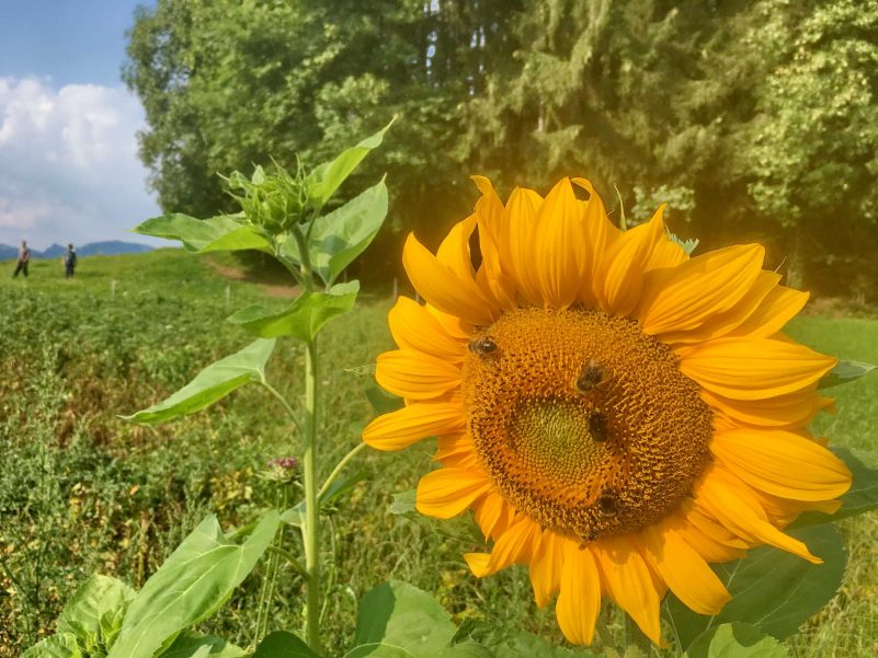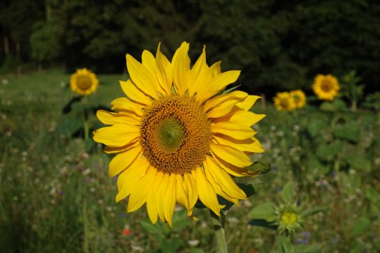 Der Sommer und die Sonne bieten vielerlei Freuden. Eine der Schönheien, die weithin sichtbar und überaus kräftig in den Farben sind, das sind die Sonnenblumen, die in ihrer Höhe gerne über ihre natürliche Nachbarschaft hinausragen. Derzeit sind die Sonnenblumen in besonders eindrucksvoller Blüte.
