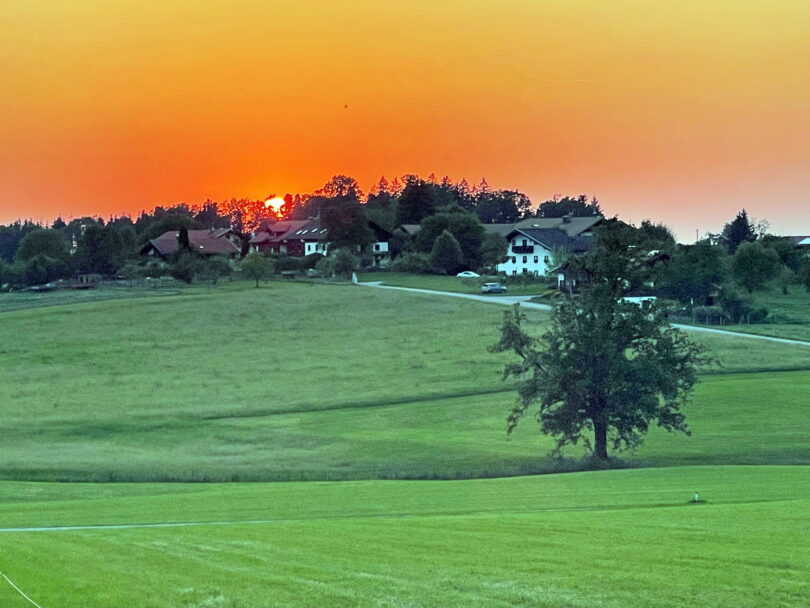 Zum Feierabend tauchen Chiemgauer Landschaften an schönen Sonnentag-Abenden in ein ganz besonderes Licht – so wie an diesem Wochenende der Ort Stetten im westlichen Teil der Gemeinde Prien.