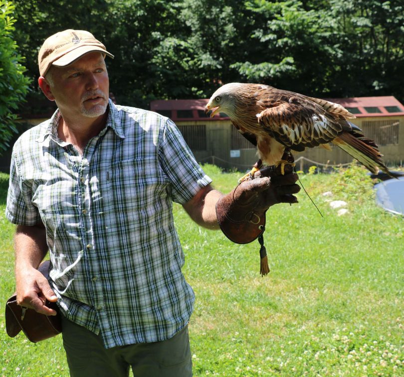 „Was macht ein Adler wenn es heiß ist? Schwitzt ein Adler?“ Falkner Hannes Lenhart nahm sich viel Zeit, um bei der großen Flugschau seinen Besuchern in der Hohenaschauer Falknerei am Fuße des Schlosses das Verhalten der großen Greifvögel im Sommer zu erklären. „Grundsätzlich fliegt kein Vogel aus Spaß an der Freude, sondern immer nur, weil er fliegen muss, sei es wegen der Nahrungsaufnahme, sei es wegen der Partnersuche oder um ein eigenes Revier zu finden. Fliegen kostet viel Energie und für wildlebende Greifvögel, die ja nur von Fleisch leben, ist der Tisch nicht so reichlich gedeckt. Ein großer Greifvogel fliegt also nur, wenn er dafür etwas bekommt“. Die aktuellen Wetterverhältnisse schreckten eher die Besucher der Falknerei ab, als die Vögel selbst. Sie müssten sich ihr Futter täglich verdienen und auch im Training bleiben.