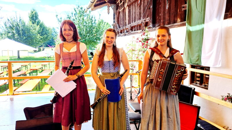 – (von li) Teresa Niedermaier, Magdalena und Veronika Loy standen mit ihren Boarischen Musikstücken auf der Bühne