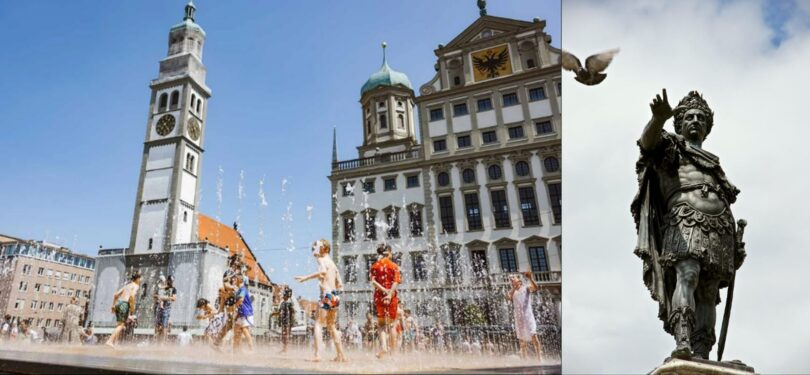 Wer über den sommerlichen Rathausplatz Augsburgs schlendert, wähnt sich auf einer italienischen Piazza. Schon das monumentale Rathaus im Stil der Renaissance weist nach Italien. Noch mehr deutet der Prachtbrunnen mit der überlebensgroßen Statue des Kaisers Augustus auf die römische Antike. Tatsächlich wurde Augusta Vindelicorum im Jahre 15 v. Chr. unter der Herrschaft des aus dem Weihnachtsevangelium bekannten Imperators gegründet. Augsburg ist damit über 2000 Jahre alt und hat in seiner gesamten Geschichte bis heute seine Wurzeln auf der italienischen Halbinsel nie durchschnitten.