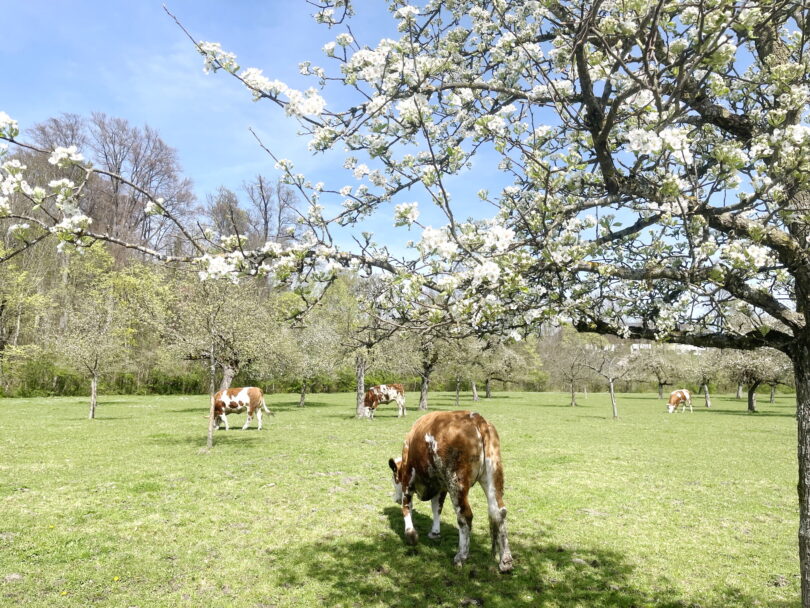 Unsere Aufnahmen entstanden in der Gemeinde Prien, unter anderem bei weidenden Kühen unter blühenden Obstbäumen im Priener Eichental.