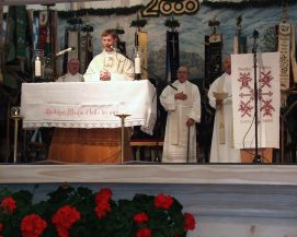 Fotos: Hötzelsperger – Bilder-Erinnerungen an Gaufest-Sonntag 2000 in Rottau – vom Gottesdienst, der damals im Festzelt abgehalten werden musste