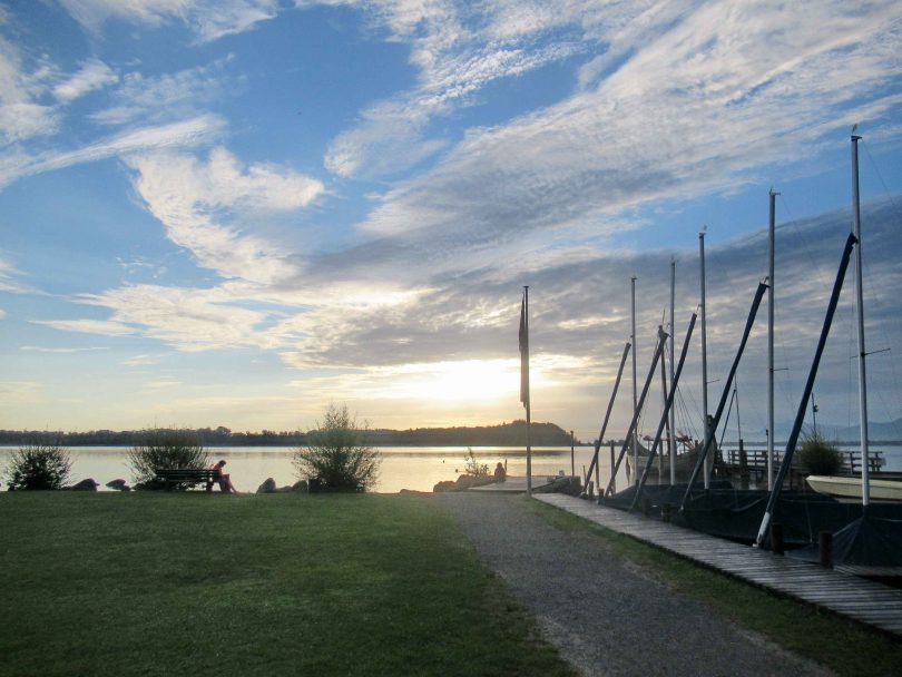 Immer wieder sonntags – frei nach diesem bekannten Liedspruch darf man sich als Bewohner oder Gast der Ferienregion Chiemsee-Alpenland auf einen schönen Tag freuen, wenn man schon in der Früh die Vorzüge der heimatlichen Natur sucht und genießt – so wie diese aktuellen Bilder vom Priener Badeplatz Schraml einen harmonischen Tagesbeginn vermitteln.