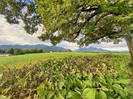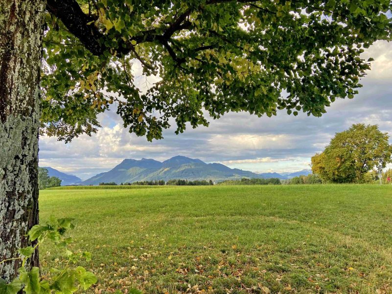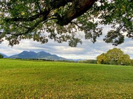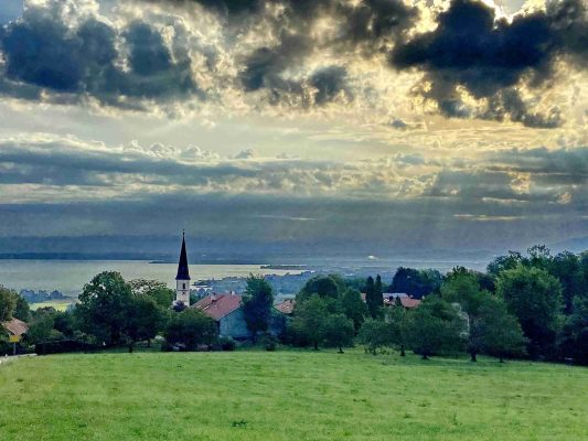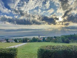 Jedem Regen folgt wieder ein Sonnenschein – gemäß dieser Naturerfahrung zeigte sich der Sonntagmorgen oberhalb von Hittenkirchen mit herrlichem Chiemsee- und Bergblick nach einem verregneten Samstag wieder von seiner versöhnlichen Seite – wie diese aktuellen Bilder bei der 1923 erbauten Kriegergedächtniskapelle zeigen.