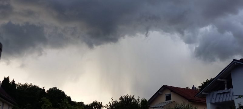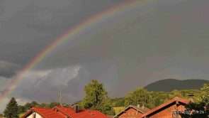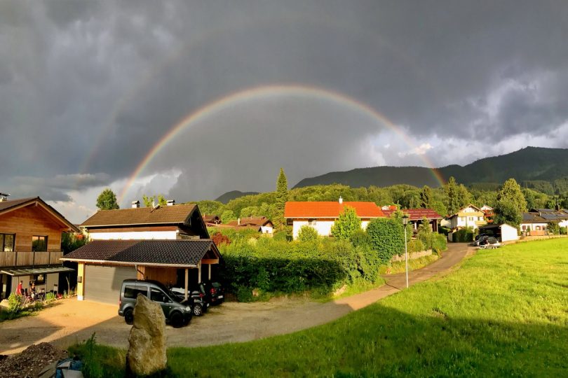 Mit einem Regenbogen über Grainbach und über der nahen Bergwelt verabschiedete sich der letzte Juli-Sonntag auf dem Samerberg. Die Aufnahmen zeigen die Schönheit des gesamten Regbenbogens.