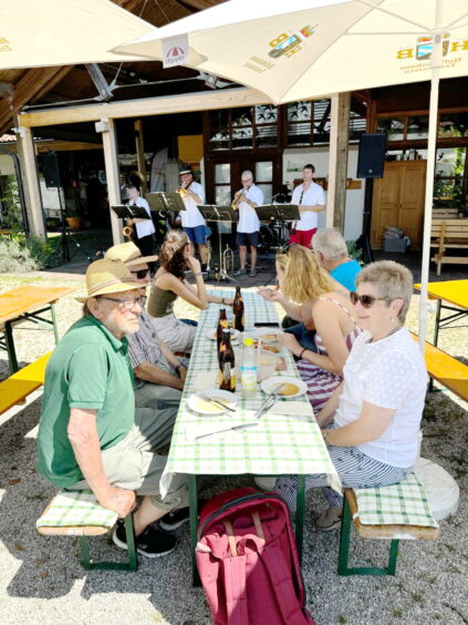 Bei freiem Eintritt wurden von den Besuchern selbst mitgebrachte Brotzeiten und Frühstücksköstlichen verzehrt und dabei der schwungvollen Musik gelauscht. Die sieben Musiker der Band spielten einen Mix von New Orleans Klassikern bis hin zu selten gespielten Dixielandstücken.