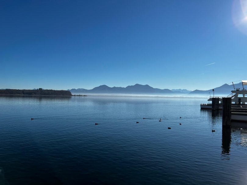 Trotz schönen Sonnenwetters am jüngsten Novembersonntag war es relativ ruhig an den Ufern des Chiemsees – wie diese Aufnahmen von Prien zeigen.