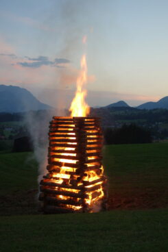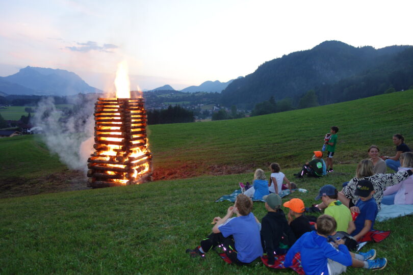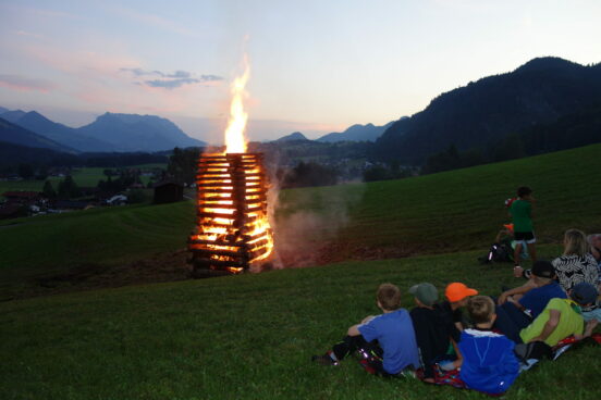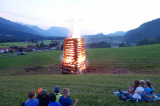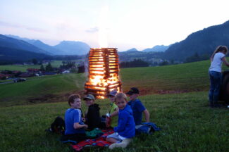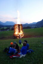 Besonders die Kinder konnten es kaum erwarten und vergnügten sich mit lebhaften Spielereien, bis es bei Einbruch der Dämmerung dann soweit war und das Feuer Licht und Wärme verbreitete.