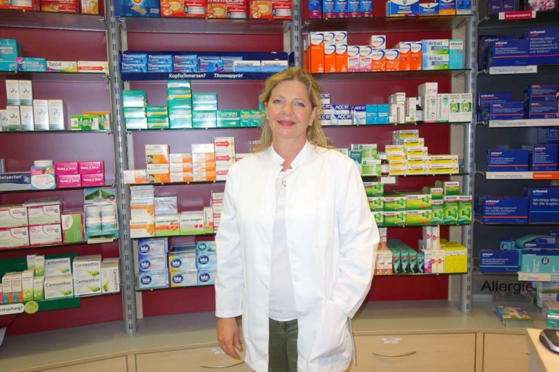 Foto/s: Hötzelsperger – Apothekerin Claudia Zangerl vor bzw. in der Schloss-Apotheke in Aschau i. Chiemgau