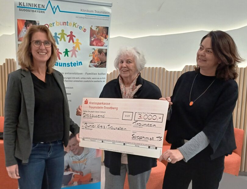 Soroptimist Club Traunstein spendet 3000 Euro für „Der Bunte Kreis“ für kranke Kinder – Den Erlös aus dem sehr erfolgreichen Benefizkonzert der A Capella Gruppe „fourte +“ und der Vorgruppe “Dolce Fagotteria“ spendete der Soroptimist Club Traunstein (SI) für das Projekt „Der Bunte Kreis“, angesiedelt im Krankenhaus Traunstein.