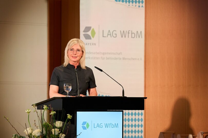 Bericht und Foto: StMAS: Bayerns Sozialministerin Ulrike Scharf beim Bayerischen Werkstättentag in München.