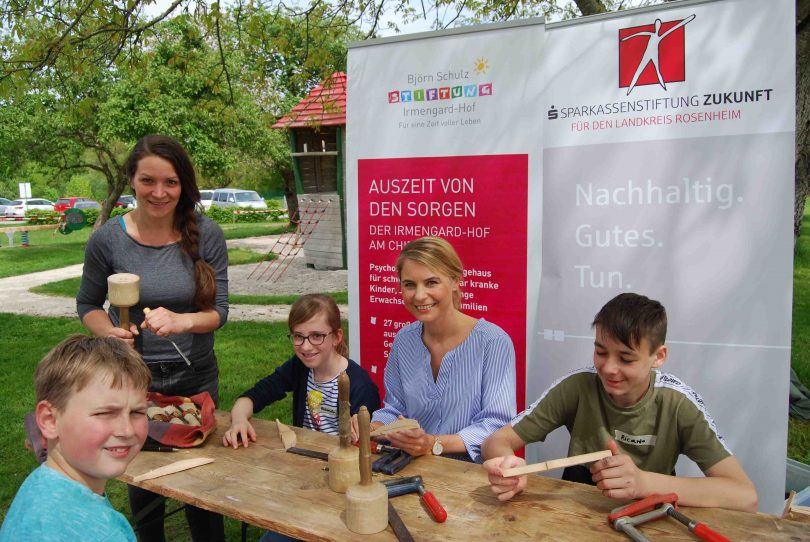 „Durch die Geschwisterfreizeiten am Irmengard-Hof wird eine Lücke geschlossen, denn das regionale Projekt ist einzigartig“, betonte Alexa Hubert. Sie freute sich sehr über die strahlenden Gesichter der eifrigen Schnitzer und meinte abschließend: „Es ist schön zu sehen, wie die Geschwisterkinder während ihres Aufenthalts aufblühen. Am Irmengard-Hof der Björn Schulz Stiftung wird großartige Arbeit geleistet. Deshalb unterstützen wir das Angebot sehr gerne.“