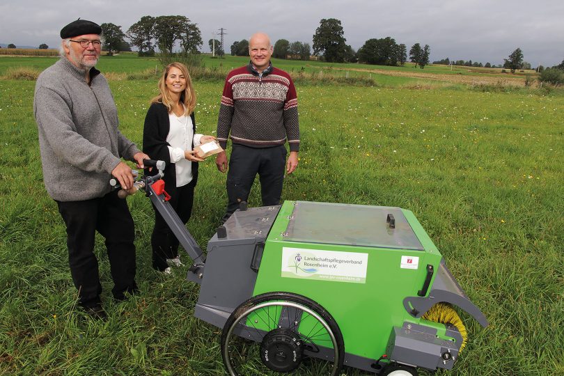 „Die Blütenvielfalt in unserer Region ist in den letzten 30 Jahren stark zurück gegangen“, sagt Markus Höper, Geschäftsführer des Landschaftspflegeverbandes Rosenheim e.V. Um diese Entwicklung zu stoppen und die Arten-, bzw. Blütenvielfalt zu erhalten, hat er gemeinsam mit der Sparkassenstiftung Zukunft für den Landkreis Rosenheim das Projekt „Artenreiche Wiesen“ ins Leben gerufen: Dank deren Förderung konnte der im ganzen Landkreis aktive Verein eine handgeführte Maschine namens „Seedprofi“ zur Ernte der Blumensamen anschaffen.