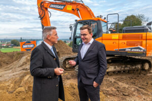 Erster Bürgermeister Christoph Schneider im Gespräch mit Landrat Otto Lederer