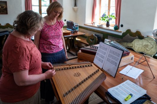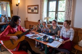 Von frühmorgens bis zum Abend und zuweilen darüber hinaus sind im Samerberger Ortsteil Grainbach derzeit aus allen Ecken und Enden volksmusikalische Klänge zu hören. Grund hierfür sind die 40. Volksmusikalischen Fortbildungswochen des Kulturvereins Rosenheim. Saiteninstrumente wechseln sich mit Blechbläsern in den örtlichen Wirts- und Privathäusern ebenso ab wie Gesangsproben und Alphornstimmen. Ein eigenes Kinderbetreuungsprogramm sorgt dafür, dass es auch fortan nicht an interessiertem Nachwuchs mangelt. Unsere Aufnahmen zeigen einige Eindrücke von einem volksmusikalischen Ortsspaziergang durch Grainbach.