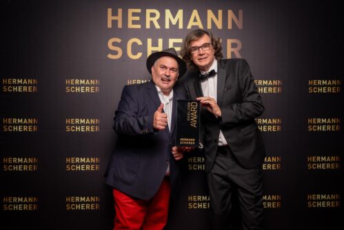Foto 1 (Justin Bockey) – „Herman Scherer überreicht Uwe Steiniger den begehrten Award“