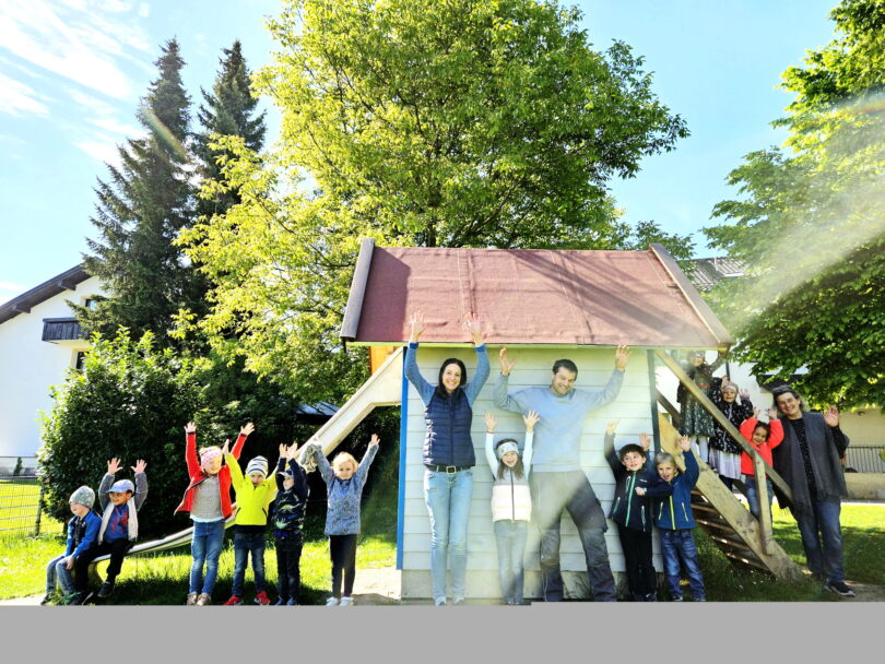 Die Kinder waren darüber natürlich sehr traurig, doch rasch kehrten wieder Glück und Freude für die jungen Dirndl und Buam sowie für die Leitung der Einrichtung ein. Denn Markus Stocker von der örtlichen Zimmerei Stocker bot sich an, für den Kindergarten einen Spielturm mit Rutschbahn und Sandkasten zu bauen und diesen dann zu spenden. Sogar um den Transport der Rutsche aus Frasdorf kümmerte sich die Firma. Sofort nach dem Aufbau erfolgte die sicherheitstechnische Abnahme des Spielgerätes und rasch nahmen die Kinder das Spielhaus mit strahlenden Augen in Beschlag. Schon in der Zeit der Mallersdorfer Schwestern, die den Kindergarten jahrelang geleitet haben, hat die Firma Stocker dem Kindergarten mehrere Spielgeräte gespendet.