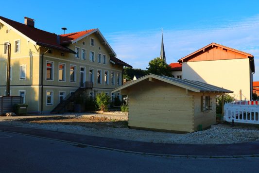 Die Gemeinde Frasdorf hat mittlerweile alle notwendigen Genehmigungen für den Betrieb einer Kindergartengruppe im Alten Schulhaus erhalten. Die notwendigen Brandschutzgutachten liegen vor. Bis zur Fertigstellung und Inbetriebnahme der neuen Kindertagesstätte am Wildenwarter Kirchenbergerl soll dieses Provisorium aufrecht erhalten werden. Im neu gebauten Spielhäuschen sollen in den kommenden Monaten und Jahren die großen Spielgeräte des Kindergartens aufbewahrt werden, dazu ist das Häuschen für die Mädchen und Buben auch bestens zum Spielen geeignet, wenn es draußen zu kalt oder drinnen zu warm ist. Der Platz rundum wird kindgerecht mit Material aufgefüllt, um Verletzungsgefahren zu minimieren.