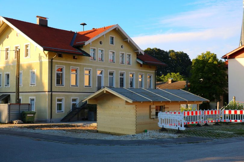 „Wenn ich groß bin werde ich eine Turnhalle“. Auf dem Bauplatz der künftigen Sporthalle in Frasdorf an der Alten Schule hat sich in den letzten Tagen ein kleines Holzhäuschen angesiedelt – aufgestellt vom Frasdorfer Bauhof. Wie berichtet wird mit dem neuen Schuljahr eine Gruppe des Kindergartens Sankt Margaretha in eines der Klassenzimmer in der Alten Schule einziehen. Nach Absprachen mit den Leitungen der Wastl-Fanderl-Schule und des Kindergartens besteht die Möglichkeit, einen von der Schule aktuell nicht genutzten Klassenraum im ersten Stock als Gruppenraum für die Kindergartenkinder herzurichten. Im Regelbetrieb reicht die Anzahl der Schulsäle in der Wastl-Fanderl-Schule für die doppelt geführten Klassen eins bis vier eines Geburtsjahrgangs aus. Da die Geburtenzahl der Mädchen und Buben in diesem Jahr für die Bildung zweier Klassen nicht ausreicht, muss in diesem Schuljahr nur eine erste Klasse eingerichtet werden. Damit wird ein Schulsaal frei, der durch den Kindergarten genutzt werden könnte. Die in diesem Jahr nicht eingerichtete erste Klasse wird sich in den kommenden vier Jahren durch alle Jahrgangsstufen hindurchziehen, so dass das Klassenzimmer dem Kindergarten zumindest für diesen Zeitraum zur Nutzung zur Verfügung steht. Bis dahin sollte der von Frasdorf und Prien gemeinsam geplante Kindergarten in Wildenwart fertig gestellt sein und genutzt werden können.