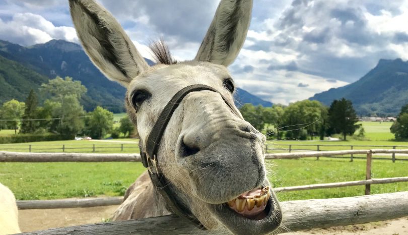 Die letzten Wochen waren gezeichnet mit sommerlichen Temperaturen und löste bei dem ein oder anderen auch eine Sommergrippe aus. Heiße Ohren können manchmal bei uns Menschen schon das erste Anzeichen dafür sein, dass eine Erkrankung im Anflug ist. Die Wetterprognose für die kommenden Tage verheißt kühlere und angenehme Temperaturen, was die bayerischen Sommerferien zu perfekten Wohlfühlmomenten werden lässt. Sichtlich genießen tut zurzeit auch dieser Esel vom Café Pauli in Aschau i.Chiemgau, der sich pudelwohl fühlt. Doch wer pauschal denkt, dieser Vierbeiner sei dumm, störrisch und ungeschickt dem ist nicht so. Die aufgestellten Ohren zeigen bei diesem pfiffigen Kerlchen, dass er den richtigen Riecher hat, wenn es darum geht ein Leckerchen abzustauben. Eines zeigt sich dabei auch wieder, alles pauschal über einen Kamm zu scheren ist definitiv nicht richtig. Besser ist es, sich immer wieder Gedanken über allgemeine Aussagen zu machen, denn nicht dass einem auf einmal ein Satz heißer Ohren droht.