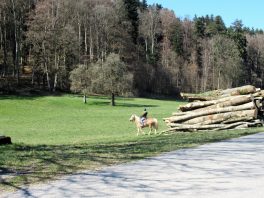 Die Tour ist ca. 15 km lang und verläuft auf wenig befahrenen Strassen, Feld- und Waldwegen. Mir sind heute insgesamt nur eine Handvoll Wanderer, 2 Reiter und 1 Radfahrer begenet. Bei ein paar ganz schönen Anstiegen freue ich mich als Senior über die Unterstützung durch meinen Elektromotor.